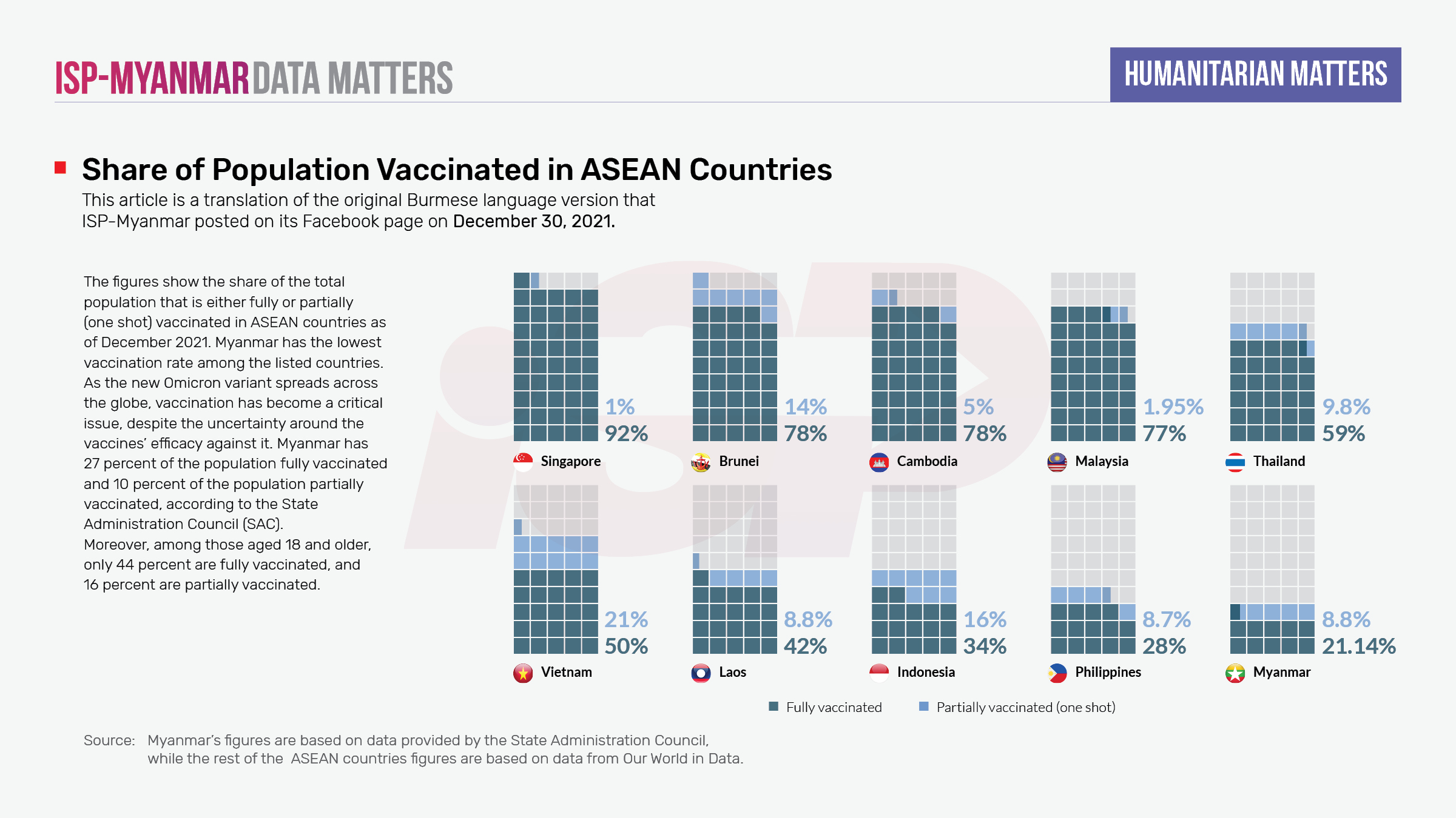 Vaccination is the key factor here, since there is some evidence that getting booster vaccines would increase immunity to the Omicron variant. In Myanmar, those who have received the two full doses of the vaccine make up only 27 percent of the country’s population, the lowest in ASEAN. Therefore, if Omicron local transmission increases in the country, the situation may be more severe than the situation during the third wave of COVID.